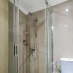 Im Badezimmer des Apartments stehen den Gästen ein Haartrockner und Handtücher zur Verfügung. Außerdem findet man hier eine getrennte Toilette, eine Dusche und eine Waschmaschine.